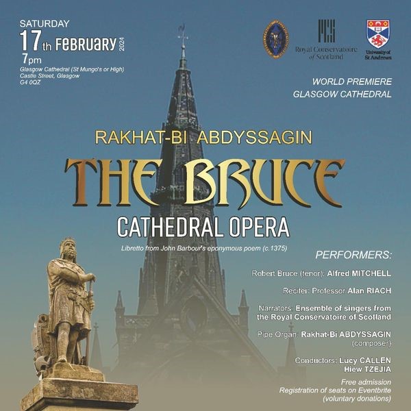 ҚАЗАҚСТАНДЫҚ ЖАС КОМПОЗИТОР РАХАТ-БИ ӘБДІСАҒИННІҢ «THE BRUCE» ОПЕРАСЫНЫҢ ӘЛЕМДІК ПРЕМЬЕРАСЫШОТЛАНДИЯДА ӨТЕДІ