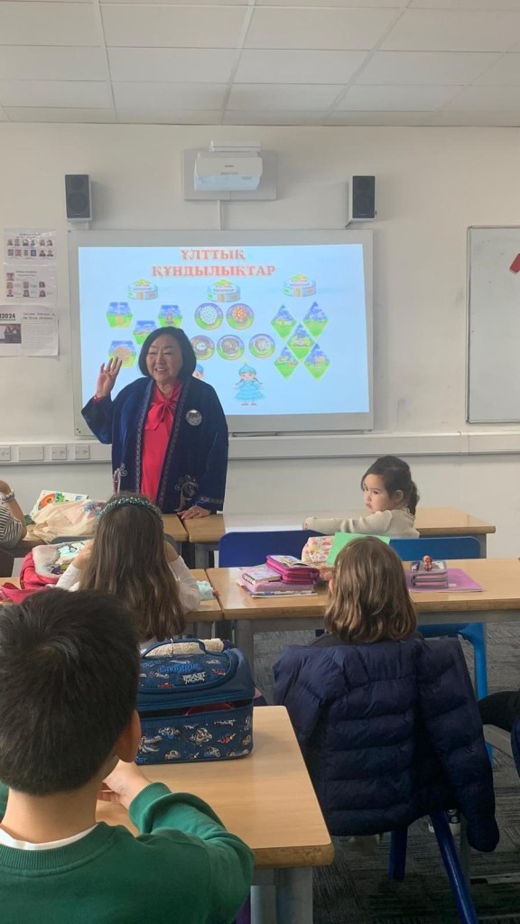 Профессор Гүлнар Мұхаметқалиева сондай-ақ Лондондағы мектеп жасындағы кішкентай балаларды оқытатын Qazaq School London мектебіне барып, ұстаздармен, оқушылармен және ата-аналармен кездесті. Профессор ұлттық құндылықтар бойынша балаларға шағын презентация жасап, мектеп оқытушыларымен қазақ тілін оқыту әдістемелері бойынша сөйлесіп, шет елдегі қазақ балаларының ана тіліне деген қызығушылығын арттыруға бағытталған шараларды талқылады.